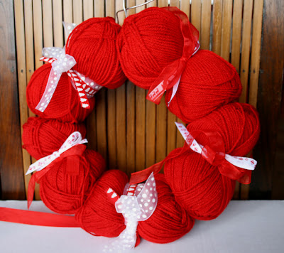 J'ai d'abord donné une forme ronde au fil de fer et j'ai glissé une à une les boules de laine le long du fil de fer